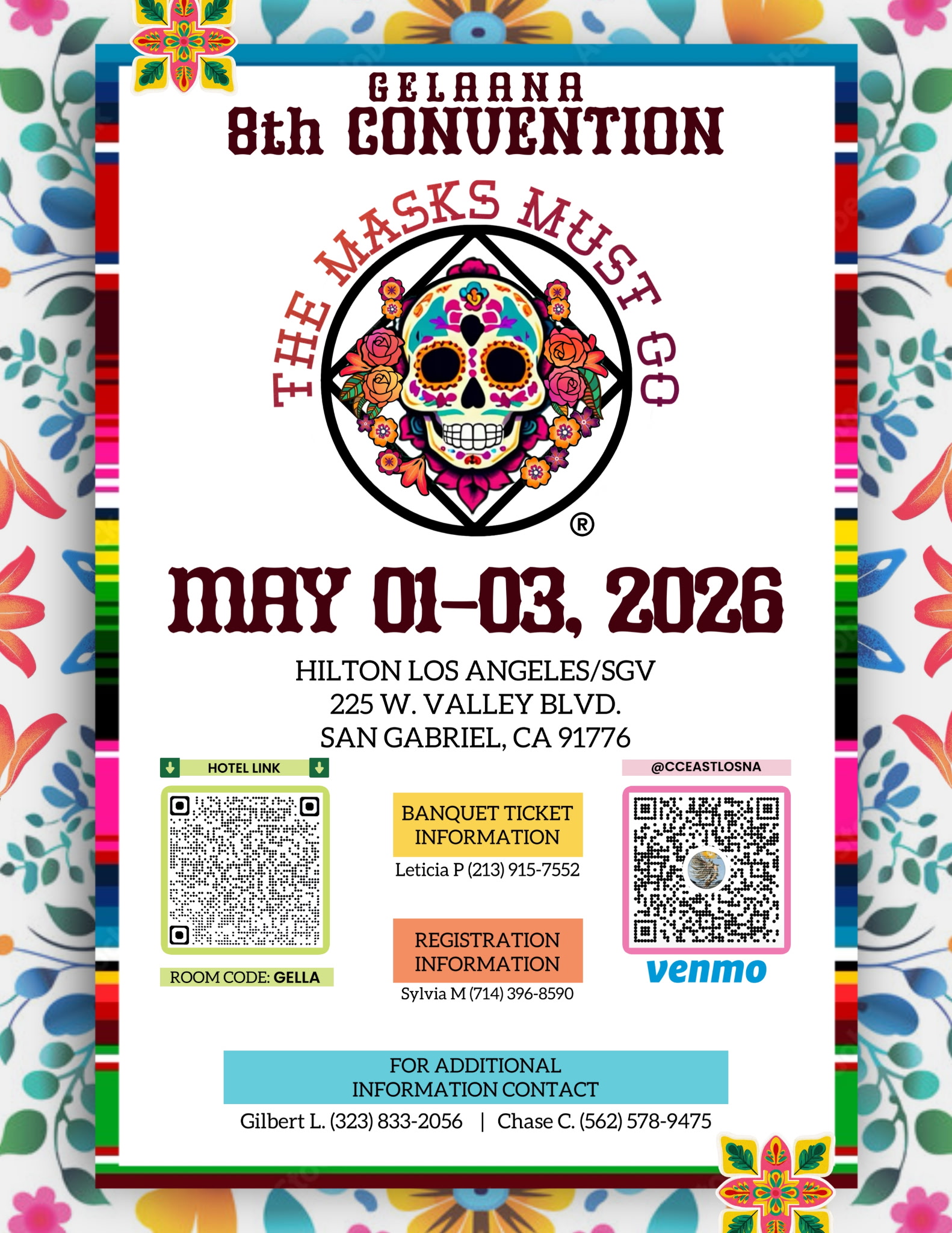 GELAA Convention NA 5:00 pm – 12:00 pmMay 1, 2026 – May 3, 2026 Hilton Los Angeles / San Gabriel225 West Valley BoulevardSan Gabriel, CA 91776View LocationMap Hilton Los Angeles / San Gabriel Google click here for more details View full calendar